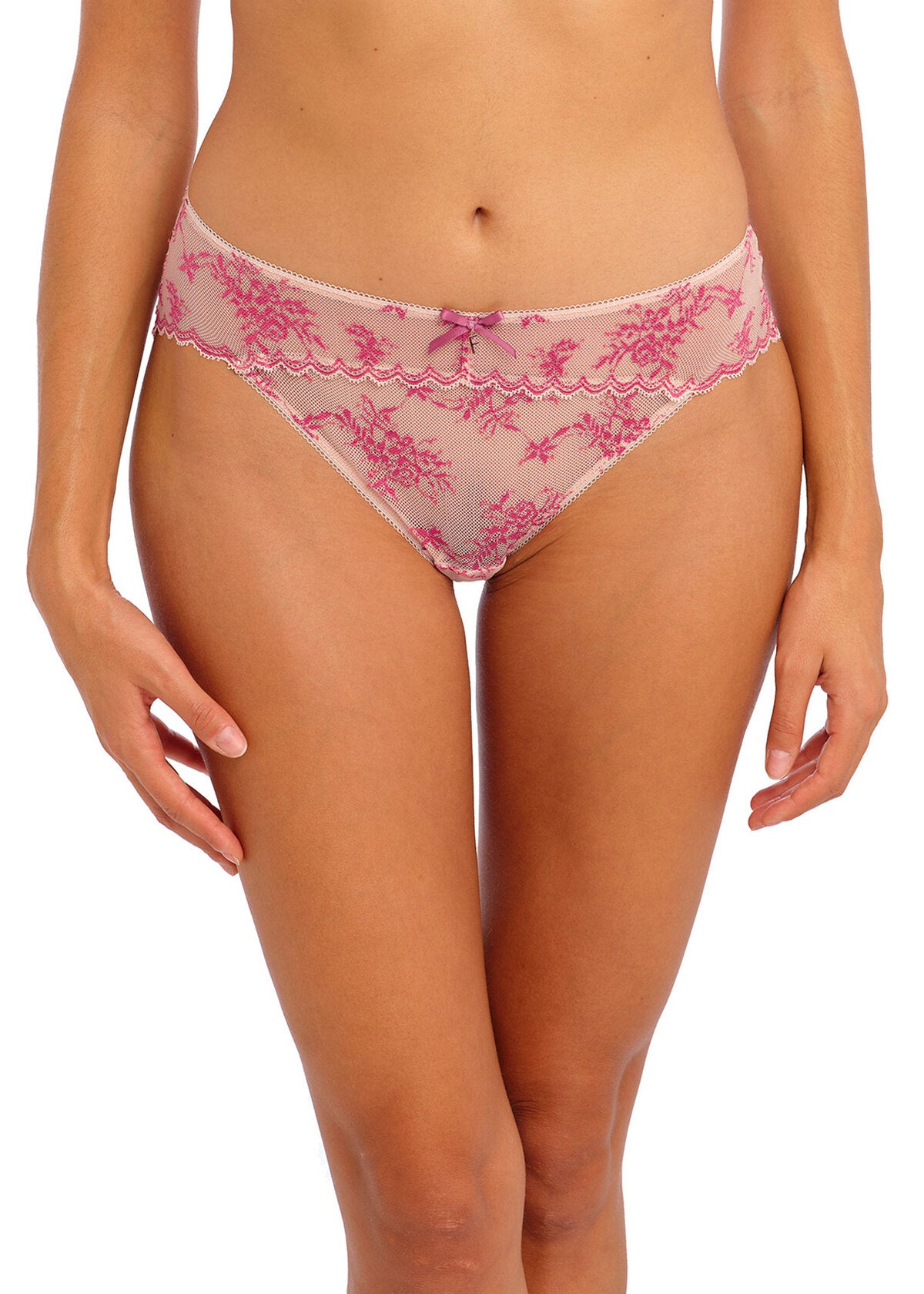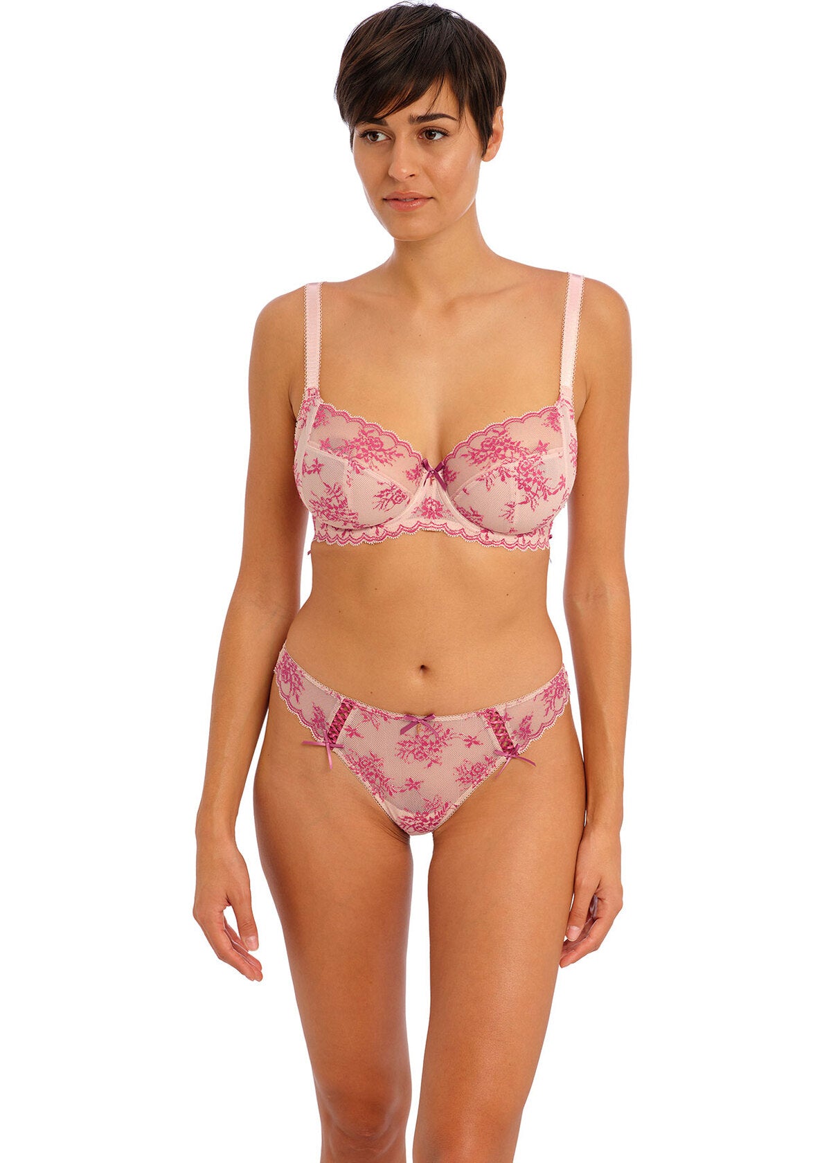 Elevate your daily essentials with the Freya Offbeat Decadence Moulded Spacer Bra in a Vintage Rose hue with smooth, romantic, two-toned pink stretch lace. The lightweight spacer fabric along the cups is great for breathable daily and everyday wear, with a soft, rounded finish under clothing.